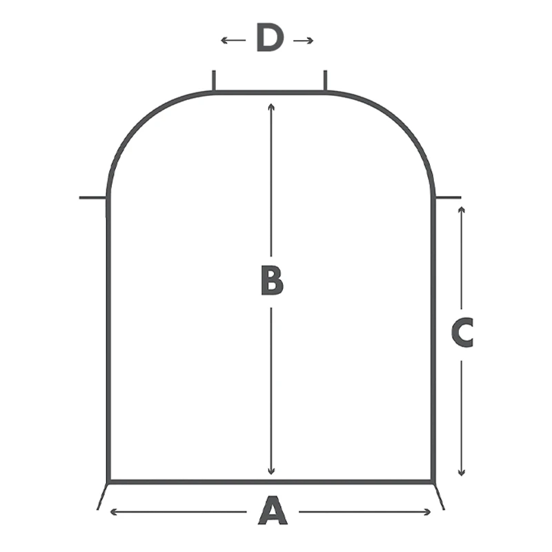 • Forme ronde : A / B / C + diamètre de l’arrondi